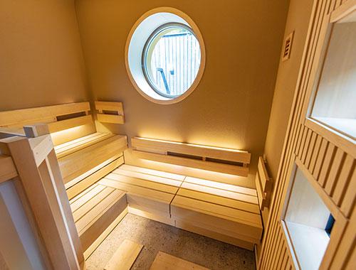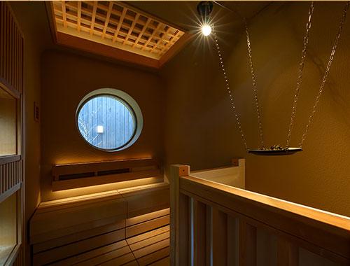 ラグジュアリースイートの部屋のお風呂には温泉以外にプライベートロウリュウサウナと水風呂も備えられています。